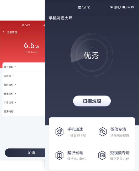 手机清理大师是一款专业的手机系统清理应用,具有内存清理、垃圾清理等核心安全管理相关功能,让您的手机安全无忧!一键清理更高效、快速、准确地清理手机垃圾,提升手机运行速度。
